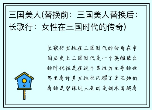 三国美人(替换前:三国美人替换后:长歌行:女性在三国时代的传奇)