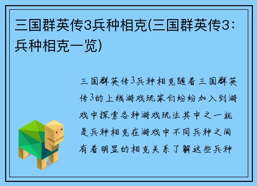 三国群英传3兵种相克(三国群英传3:兵种相克一览)